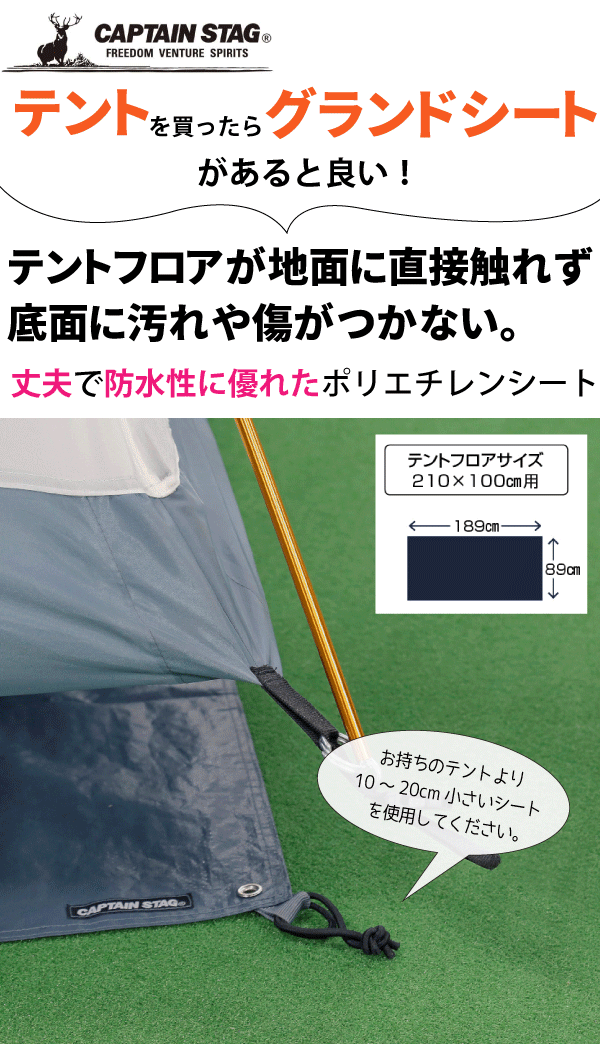 [割引クーポン配布中]テントグランドシート 210x100 サイズ用 (UA-40 UA-0040 )対応 テントシート キャンプシート 防水マット CAPTAIN STAG キャプテンスタッグ グランドシート パール金属 【RCP】【UA-4520】
